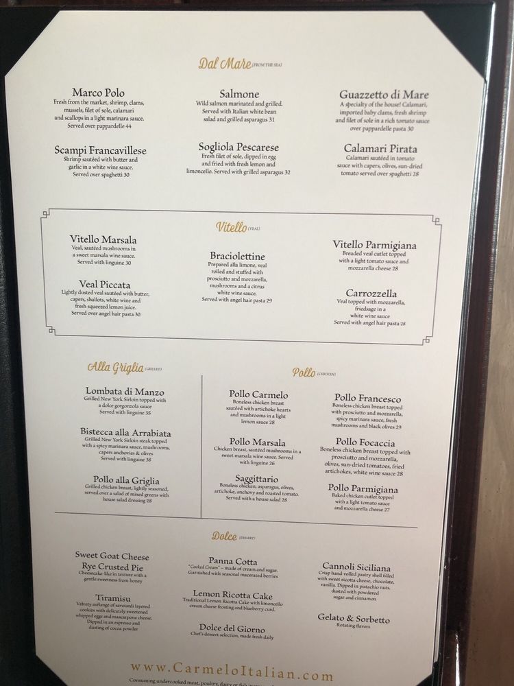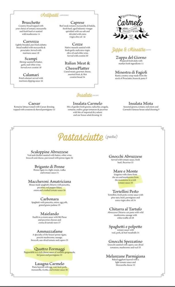 The ambiance is intimate and romantic, perfect for a date or a special gathering. Highlights of the menu include house-made tiramisu and classic margherita pizza, prepared with the freshest ingredients. Known for its welcoming atmosphere, Ristorante Carmelo also offers great services like takeout and delivery, making it accessible for all.